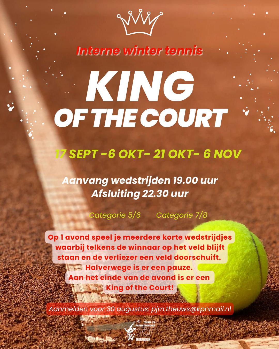 Vanwege het grote succes van vorig jaar wordt ook dit najaar weer de nieuwe opzet van de interne wintercompetitie tennis georganiseerd, namelijk: King of the Court!